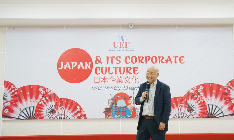 Tại buổi workshop, GS. Fumio Okita đã mang đến cơ hội tiếp cận, tìm hiểu và học hỏi các mô hình kinh doanh năng động, tiến bộ và phong cách riêng của mỗi doanh nghiệp tại các quốc gia khác nhau cho sinh viên UEF. Diễn giả còn đi sâu vào phân tích, đánh giá chi tiết về sự khác nhau giữa văn hoá làm việc của Mỹ so với văn hoá làm việc của Nhật Bản.
