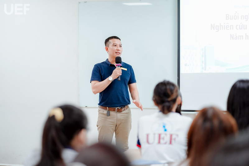 TS. Võ Văn Thành Thân chia sẻ lợi ích khi tham gia nghiên cứu khoa học và động viên tinh thần sinh viên