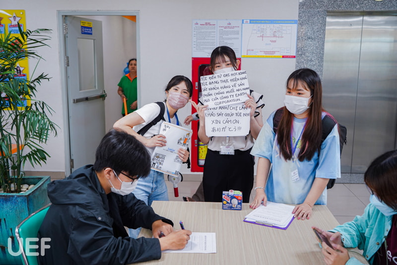 Khi gặp trở ngại về ngôn ngữ với đối tượng được khảo sát, các bạn Nhật Bản đã được sinh viên UEF hỗ trợ, cùng nhau kết hợp để tìm ra giải pháp hiệu quả.