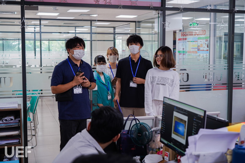 Các sinh viên Nhật Bản tham quan UEF sau khi thực hiện hoạt động nhóm