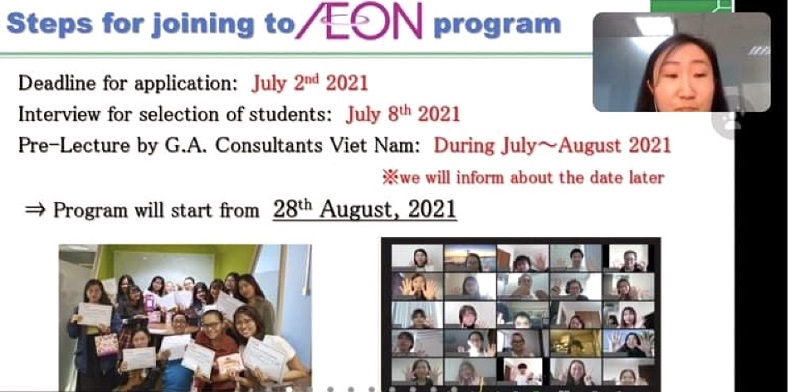 Chương trình đầu tiên được giới thiệu là chương trình thực tập tiếp thị trực tuyến AEON của Đại học Kwansei Gakuin (KGU) – Nhật Bản.