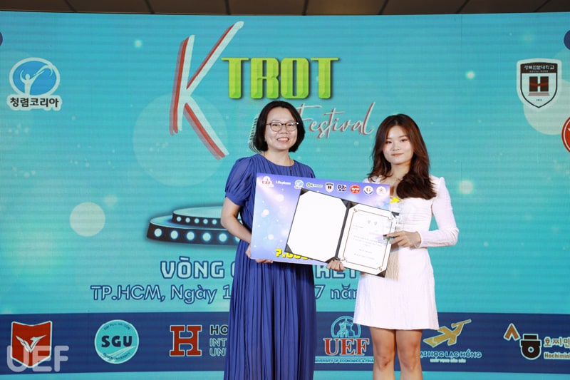 Nằm trong chuỗi hoạt động hướng đến chào mừng kỷ niệm 30 năm ngày thiết lập quan hệ ngoại giao Việt Nam - Hàn Quốc, đêm Chung kết cuộc thi K-Trot Festival 2022 đã diễn ra tại Nhà UEF chiều ngày 16/7. Các thí sinh đến từ 2 quốc gia đã có những giây phút thăng hoa cùng lời ca, nhạc cụ trên sân khấu.