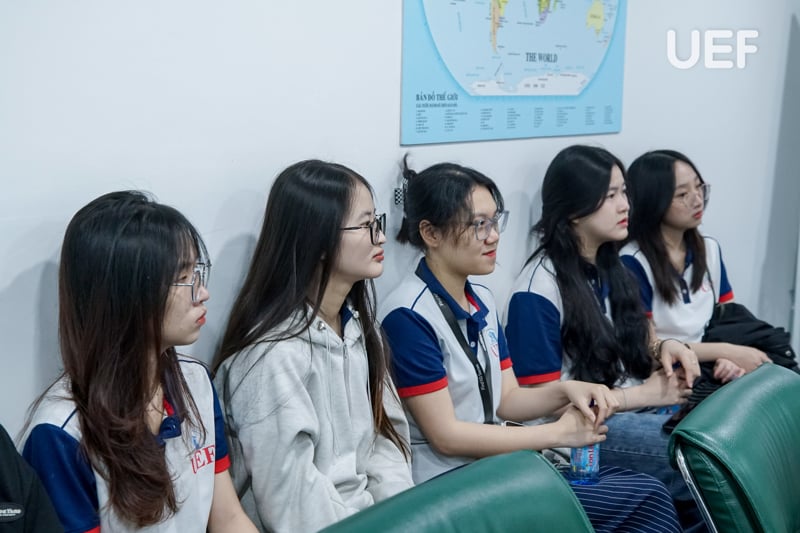 Trong quá trình tham quan, các bạn sinh viên UEF cũng hào hứng đặt ra nhiều câu hỏi liên quan đến cơ hội thực tập, cách ứng tuyển vào các vị trí tại công ty, những yêu cầu cần thiết trong môi trường doanh nghiệp,... Những câu hỏi này giúp sinh viên có cái nhìn rõ ràng hơn về quá trình tuyển dụng, là tiền đề để các bạn chủ động định hướng cho bản thân trong tương lai nghề nghiệp.