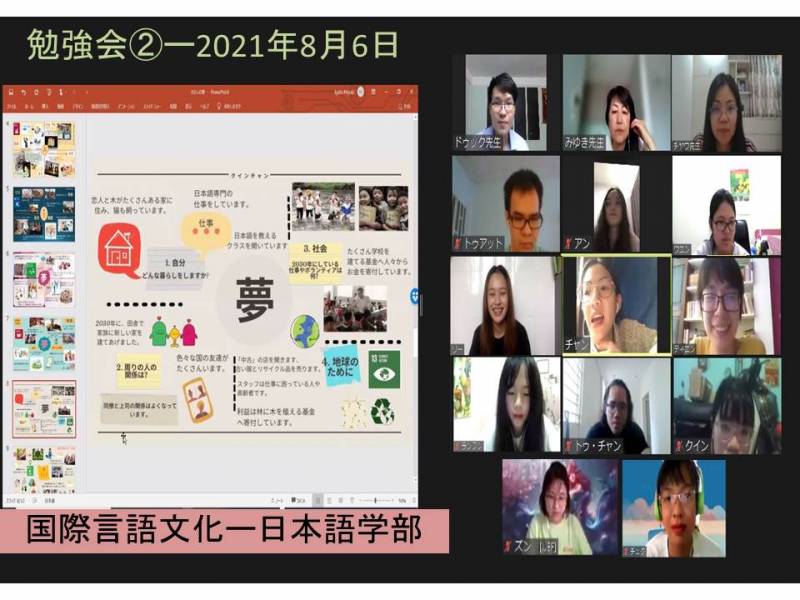 Với sự hướng dẫn của các giảnh viên Khoa: Cô Miyuki Igeta, Cô Vương Minh Châu, Thầy Hoàng Vũ Đức, chương trình gồm hai phần chính: Buổi diễn thuyết về Cách xây dựng kế hoạch, định hướng nghề nghiệp, ước mơ tương lai (4/8). Từ đó, mỗi bạn có thể trình bày về lộ trình, nắm được mục tiêu của bản thân trong những năm sắp tới (6/8).