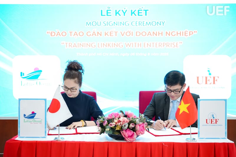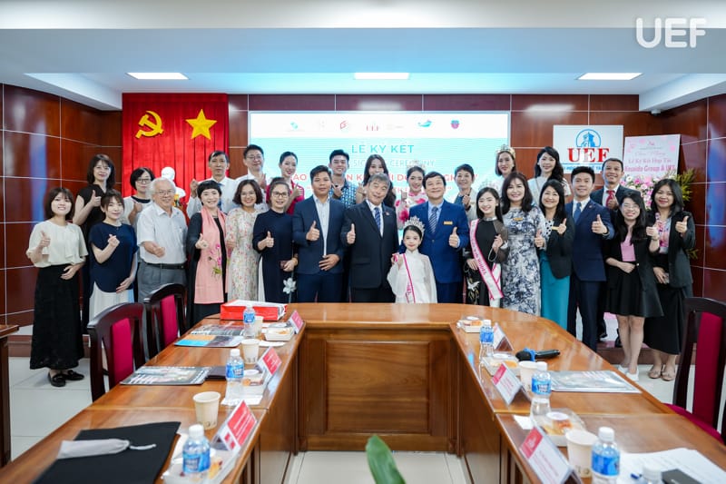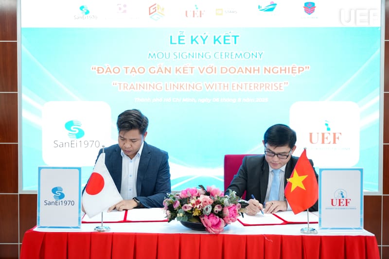 Sáng ngày 6/8, UEF đã tổ chức buổi lễ ký kết MOU với 5 doanh nghiệp trong nhiều lĩnh vực, mở rộng thị trường hoạt động ở Nhật Bản. Những thỏa thuận hợp tác này với mong muốn tạo điều kiện để sinh viên ngành Ngôn ngữ Nhật nói riêng và UEF nói chung có chơ hội thực tập, làm việc ở môi trường đa văn hóa chuyên nghiệp.