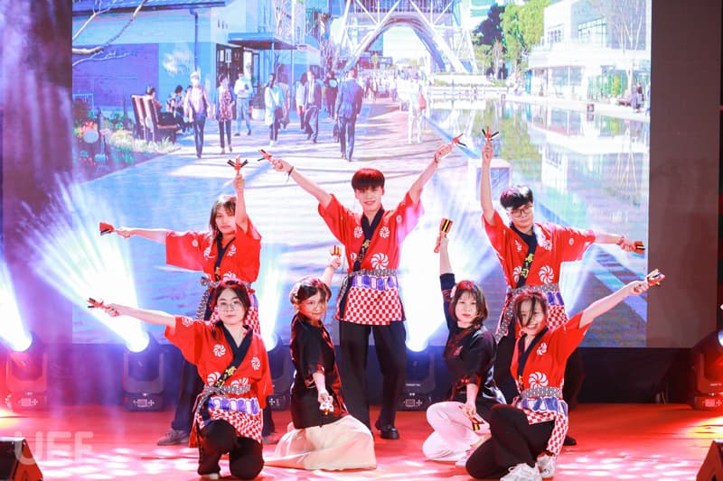 Trong đó, UEF có 2 bài dự thi. Ở bảng tiếng Việt, với tiết mục kịch “Mối lương duyên giữa Hội An (Việt Nam) và Nagasaki (Nhật Bản) kể về câu chuyện “mối lương duyên” giữa hai nước từ thế kỷ thứ 10, UEFers đã lồng ghép giữa nét đẹp văn hóa truyền thống, tinh thần, trang phục của Việt Nam và Nhật Bản.