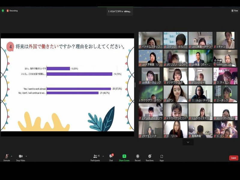 Nhóm sinh viên UEF ngành Ngôn ngữ Nhật tham gia đã xuất sắc trúng tuyển phỏng vấn trước đó. Các sinh viên từ trường đại học Nhật Bản gồm: Đại học Musashino (Tokyo), Đại học Konan (Kobe), Đại học Nữ sinh Kagami (Kanagawa), Đại học Daito Bunka (Tokyo).
