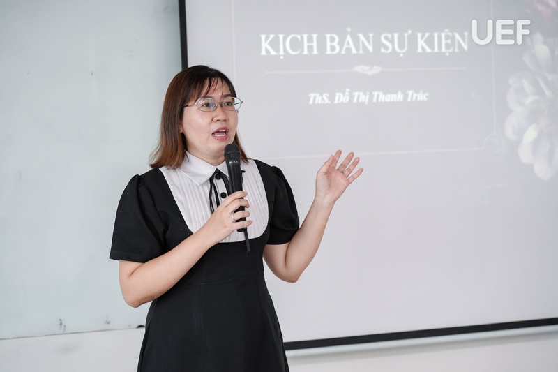 Chương trình có sự đồng hành của ThS. Đỗ Thị Thanh Trúc - Giảng viên Khoa Quan hệ công chúng và Truyền thông. Cô đã mang đến phần chia sẻ sinh động và thực tiễn xoay quanh kỹ năng xây dựng kịch bản sự kiện. Đây là một trong những năng lực cốt lõi đối với sinh viên theo đuổi lĩnh vực truyền thông - sự kiện.