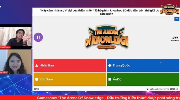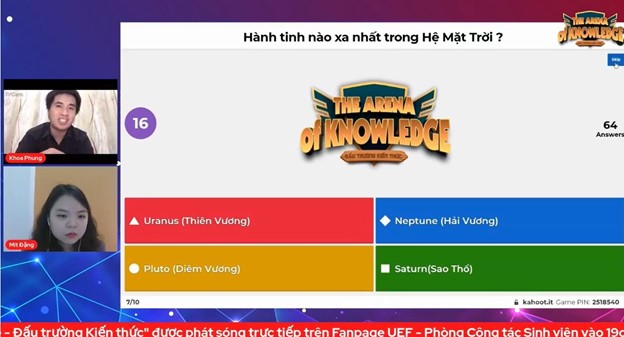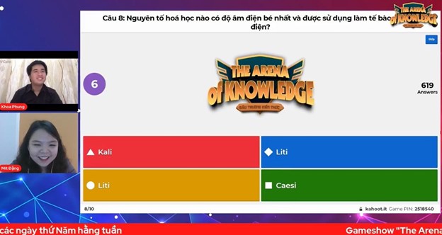 Bên cạnh đó, những người tham gia chơi trên Kahooot cũng vô cùng xuất sắc, với số điểm 7581, bạn Tseng Wen Chen - sinh viên khoa Tài chính - Thương mại đã giành vị trí cao nhất. Vị trí thứ 2 thuộc về bạn Nhi (MSSV: 195020525) với số điểm 7565. Với 7551 điểm, bạn sinh viên có mã số 195120301 về vị trí thứ 3. Trong đó, người chơi giành được số điểm cao nhất sẽ nhận được phần quà từ Ban tổ chức.