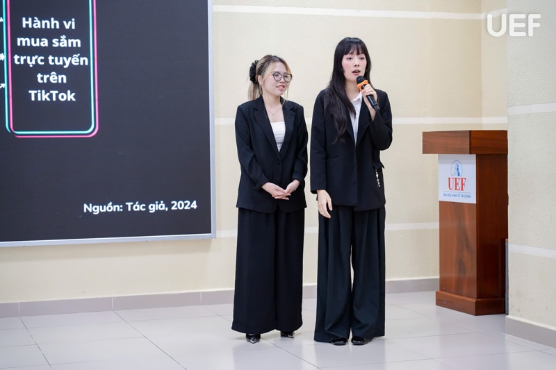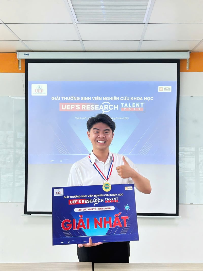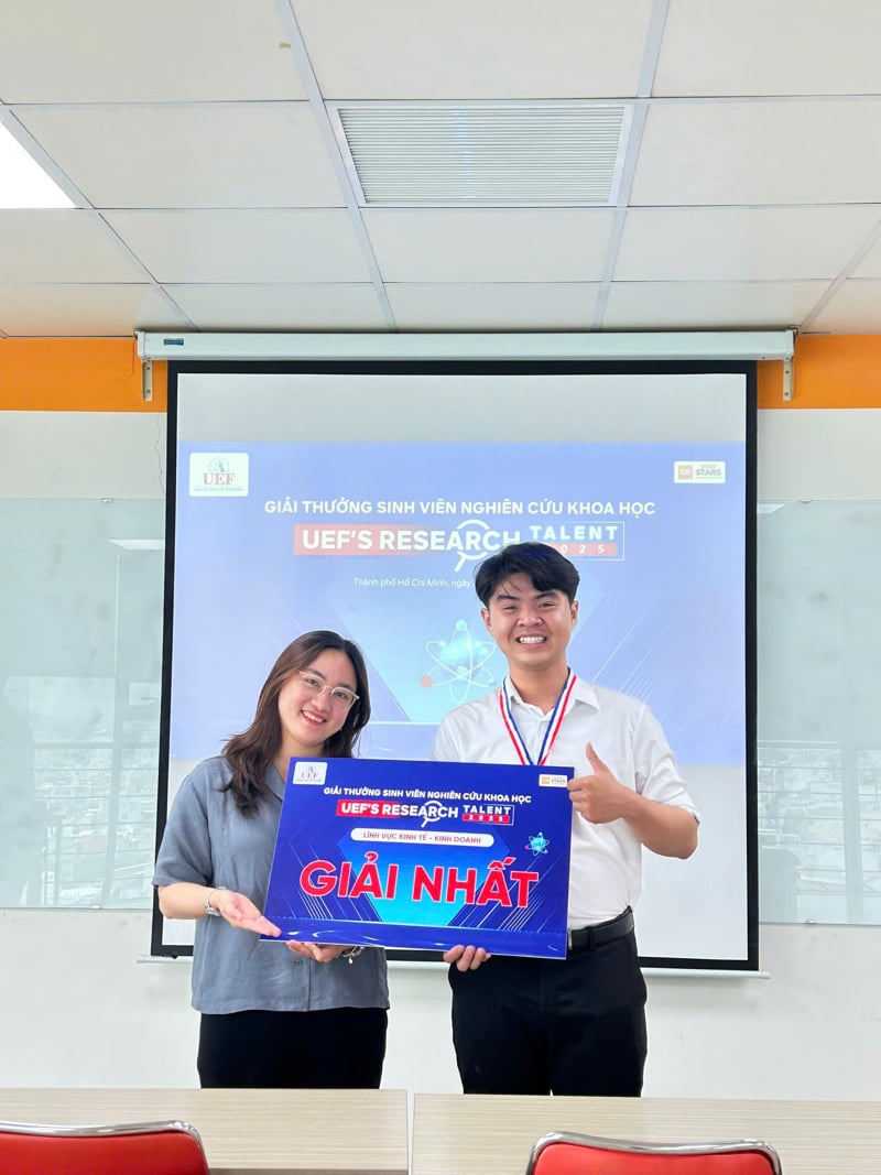Trong khi đó, bạn Phan Nguyễn Gia Quỳnh, tân Cử nhân ngành Marketing bắt đầu yêu thích nghiên cứu khoa học từ năm cấp 3 và thời gian ở UEF là "bệ phóng" cho bạn phát triển đam mê ấy nhiều hơn: "Điều giữ em gắn bó với nghiên cứu không nằm ở giải thưởng, mà là những lần “ồ, thì ra là vậy” khi đọc số liệu, kiểm chứng giả thuyết hay tìm được một góc nhìn mới mẻ. Cảm giác biến những kiến thức tưởng chừng lý thuyết thành giải pháp cho các vấn đề thực tế luôn khiến em hứng thú và muốn tiếp tục. Với em, đó là một hành trình bền bỉ được nuôi dưỡng bằng sự tò mò, niềm vui khám phá và mong muốn tạo ra giá trị dù là nhỏ nhất".