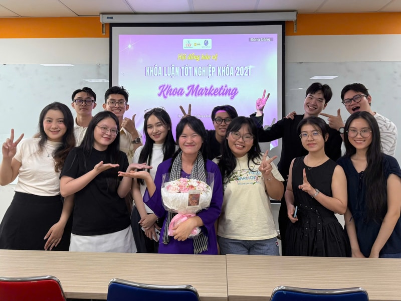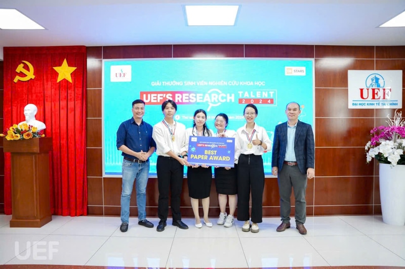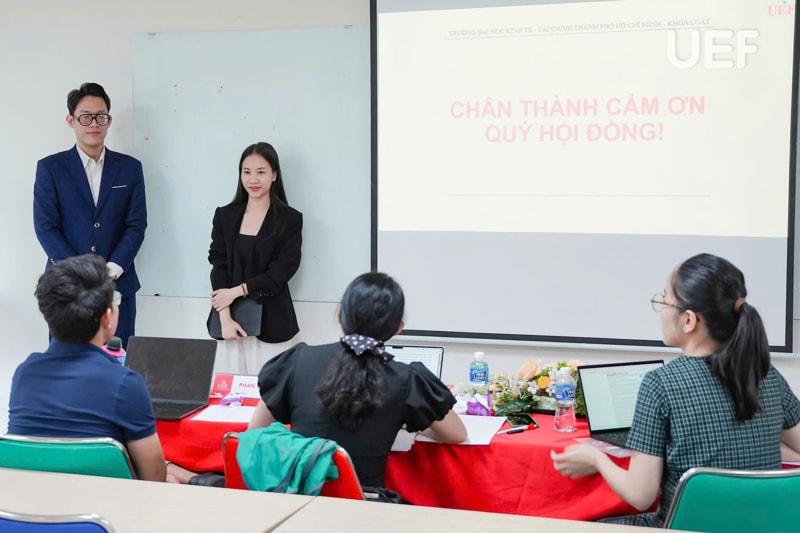 Thầy cô tại UEF là người hướng dẫn, đặt ra những câu hỏi khiến sinh viên phải suy nghĩ lại toàn bộ hướng đi của mình. Có nhóm sinh viên từng “vò đầu bứt tóc” chỉ vì một câu hỏi phản biện của giảng viên. Nhưng cũng chính nhờ vậy, các bạn hiểu rằng làm nghiên cứu là học cách phân tích đến tận gốc rễ, thay vì trình bày dàn trải, vô thưởng vô phạt. Đức Huy cũng đặc biệt nhắc đến TS. Đỗ Thị Thu Hà, giảng viên hướng dẫn nhóm, một người thẳng thắn, logic và có khả năng đặt ra đúng những câu hỏi giúp nhóm bạn định hình lại tư duy nghiên cứu.