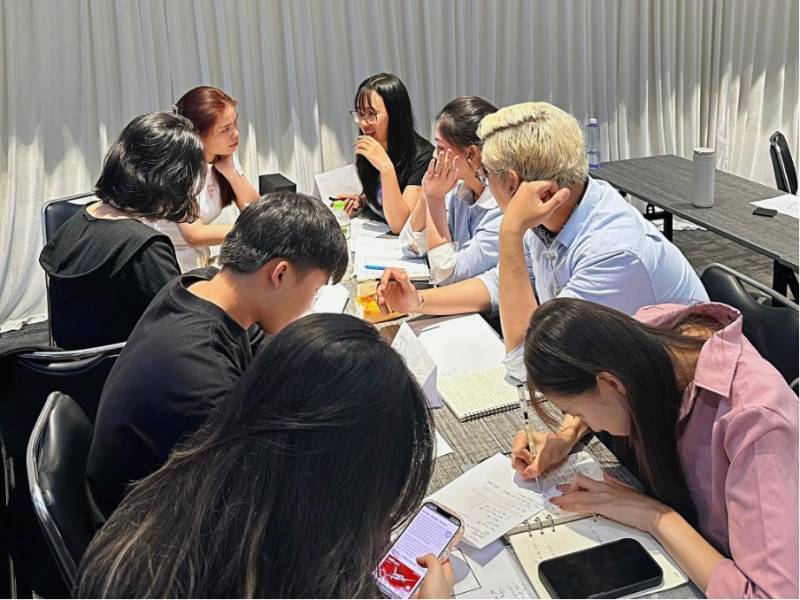 Sinh viên PRC tập trung làm bài tập đánh giá năng lực tại Apex Media [Ảnh: Apex Media]