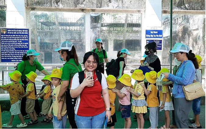 Các bạn sinh viên hào hứng khi đi trải nghiệm một ngày làm nhà báo tại Thảo Cầm Viên