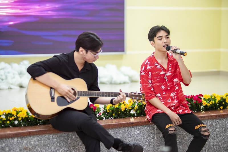 Với sự hưởng ứng đầy tuyệt vời của các bạn sinh viên, âm nhạc không dừng lại mà tiếp nối với phần trình diễn của Gia Hy và Đức Minh cùng với một khán giả bất kỳ có mặt tại hội trường với ca khúc “Một đêm say”