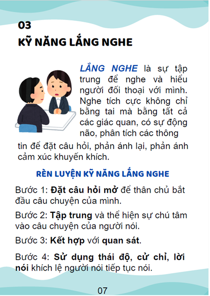 Lắng nghe là một trong những kỹ năng quan trọng được giới thiệu trong cẩm nang