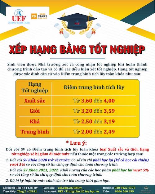Sinh viên được Nhà trường xét và công nhận tốt nghiệp khi hoàn thành chương trình đào tạo và có đủ các điều kiện xét tốt nghiệp. Hạng tốt nghiệp được xác định căn cứ...