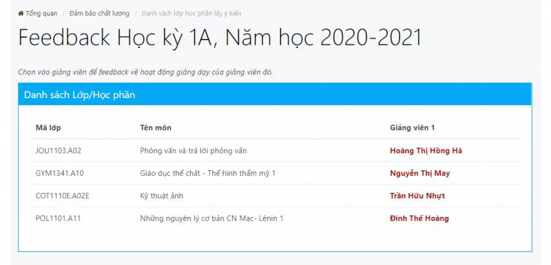 Hoạt động khảo sát ý kiến sinh viên mỗi học kỳ nhằm giúp nhà trường tiếp tục nâng cao và cải tiến chất lượng hoạt động dạy và học tại UEF. Những ý kiến, nguyện vọng của các bạn là cơ sở để nhà trường có phương án điều chỉnh phù hợp, hỗ trợ giải quyết các thắc mắc của sinh viên, giúp các bạn học tập và rèn luyện hiệu quả hơn. Vì vậy, nhà trường rất mong nhận được những đóng góp thẳng thắn và mang tính xây dựng từ các bạn sinh viên về hoạt động giảng dạy của giảng viên học kỳ 1A năm học 2020-2021.