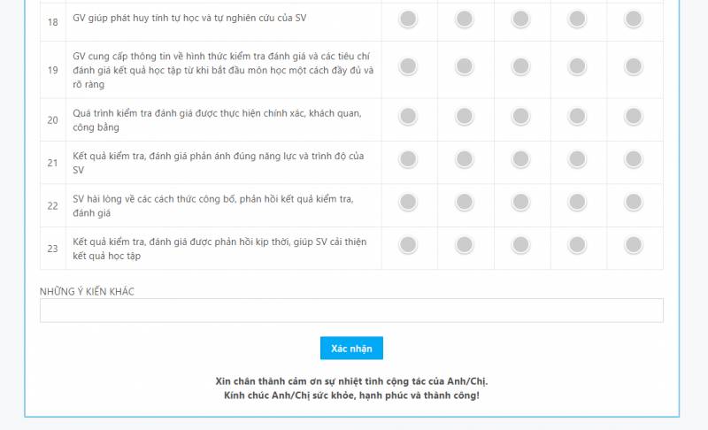 Bước 5. Chọn Xác nhận sau khi hoàn thành khảo sát tất cả các mục.