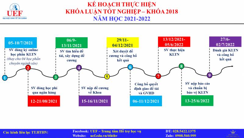 Các bạn SV Khóa 2018 xem chi tiết Kế hoạch tốt nghiệp (thời gian thực tập; thời hạn nộp báo cáo, nộp chứng chỉ chuẩn đầu ra;...) để nắm rõ tiến độ hoàn thành khóa học nhé.