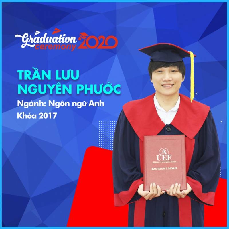 Trần Lưu Nguyên Phước - Chàng trai có niềm đam mê đặc biệt với tiếng Anh, từng gây ấn tượng với cộng đồng sinh viên Nhà UEF bởi thành tích IELTS 8.0 khi còn là học sinh cũng đã hoàn thành xong chặng đường 4 năm học tập tại UEF với điểm trung bình tích lũy 3.9/4.0, trở thành thủ khoa đầu ra ngành Ngôn ngữ Anh. Bên cạnh tiếng Anh, chàng trai này còn yêu thích tiếng Nhật và đạt trình độ N4. Chia sẻ về phương pháp học ngoại ngữ, Nguyên Phước gói gọn trong những từ “thường xuyên tiếp xúc”, “không nên ngại sai”. Muốn học tốt ngoại ngữ, các bạn phải “sống” hàng ngày với nó. Đơn giản lắm, bạn chỉ cần “siêng” xem các bộ phim phụ đề tiếng Anh, sưu tập nhạc, thậm chí là hát tiếng Anh,...