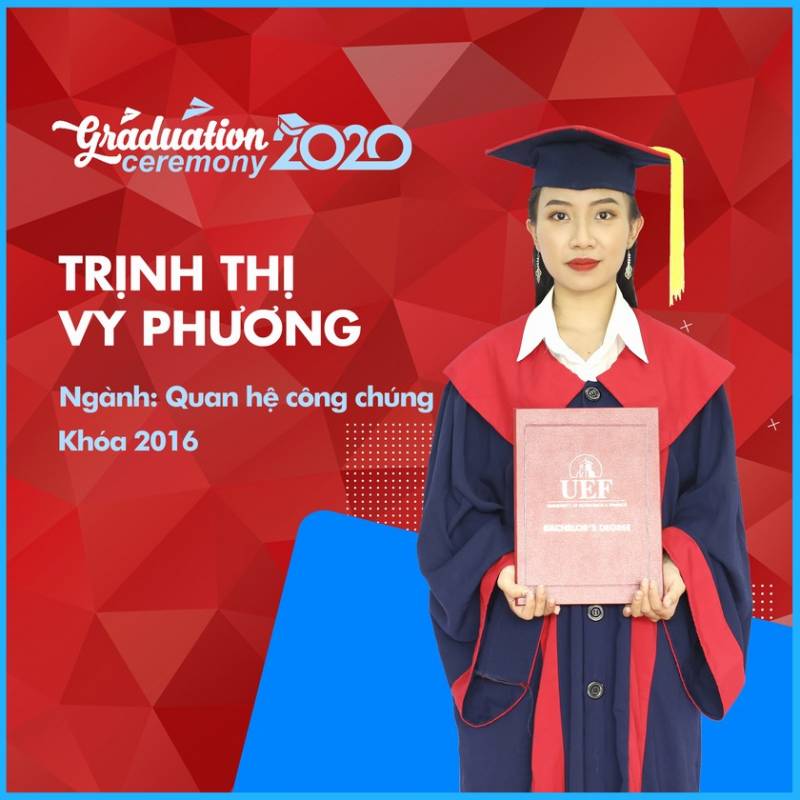 Trịnh Thị Vy Phương – Thủ khoa ngành Quan hệ công chúng cũng là cái tên đầy ấn tượng. Trong cộng đồng sinh viên Nhà UEF, cô bạn này được mọi người biết đến với các thành tích nổi trội như: Sinh viên tài năng năm học 2016 - 2017, giải Nhất cuộc thi “Sinh viên UEF - Những câu chuyện đẹp” 2019,… Không những năng nổ trong các hoạt động, Vy Phương còn xuất sắc đạt điểm GPA 3,89/4.0. Bí kíp để đạt được số điểm này chính là chủ động và nghiêm túc trong việc học, lắng nghe những kiến thức mà thầy cô truyền đạt, trao đổi với giảng viên để nắm chắc trọng tâm nội dung bài,...