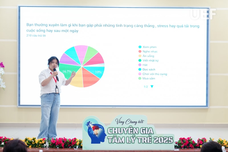 Cuộc thi còn là nơi tôn vinh sự sáng tạo của các bạn trẻ và tiếp thêm động lực cho những đề tài có tiềm năng ứng dụng cao. Những chủ đề như "Brain rot xuyên thế kỷ – Gen Z thời đại thối não", "Ánh sáng tâm khảm", "Tai nghe sóng não hỗ trợ cải thiện tập trung và giảm căng thẳng cho người ADHD"... không chỉ phản ánh những vấn đề tâm lý của thế hệ trẻ mà còn mở ra những cuộc thảo luận sâu sắc về sức khỏe tinh thần trong xã hội hiện đại.