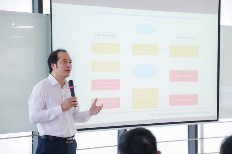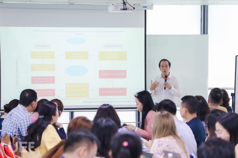 Với mong muốn nâng cao chất lượng đào tạo, đặt ra những tiêu chuẩn đầu ra vừa phù hợp vừa hiệu quả cho sinh viên, sáng 21/11, Phòng Đào tạo UEF đã tổ chức chương trình bồi dưỡng “Thực hành đánh giá chuẩn đầu ra chương trình đào tạo và học phần” cho giảng viên. Tại đây, các thầy cô cùng lắng nghe, chia sẻ kinh nghiệm, chọn lọc và ứng dụng những kiến thức bổ ích.