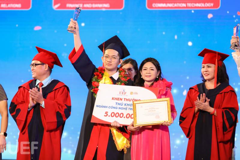 Tân cử nhân ngành Công nghệ truyền thông - Phạm Chí Thanh là một gương mặt nổi bật khác trong các hoạt động nghiên cứu khoa học sinh viên và hoạt động Đoàn Hội. Là thành viên tích cực của CLB IEF, Chí Thanh từng đảm nhiệm vai trò MC song ngữ cho các sự kiện cấp Khoa, Viện; các chương trình chào đón sinh viên quốc tế tham quan UEF...