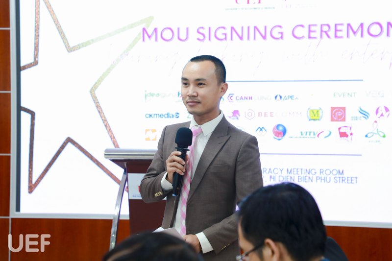 Phát biểu mở đầu chương trình, PGS.TS. Ngô Cao Cường đã giới thiệu sơ lược về những thành tựu của UEF trong 15 năm qua. Đồng thời, đại diện Ban Giám hiệu Nhà trường cho biết: "UEF luôn tạo ra môi trường thân thiện, gần gũi và nhiều trải nghiệm thực tế cho sinh viên. Những bài học thu được từ việc gắn kết cùng doanh nghiệp sẽ mang lại giá trị to lớn cho người học, hiện thực hóa lý thuyết trên giảng đường. Đặc biệt, nhóm ngành về truyền thông thay đổi từng ngày, được tiếp cận cùng doanh nghiệp trong nghề sẽ giúp các bạn bám sát thực tiễn".