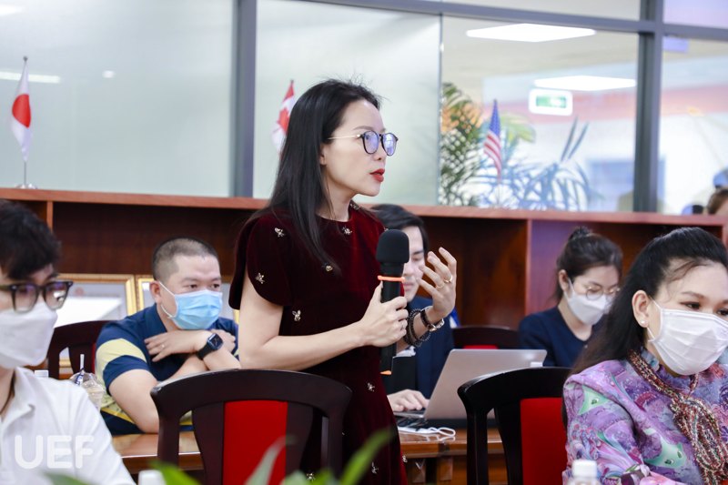 Bà Nguyễn Minh Hương - Tổng Giám đốc Golden Communication Group cho biết: "Nghề truyền thông hiện nay đang phát triển rất mạnh mẽ. Các bạn trẻ cần có cầu nối để khi làm việc đỡ bị bỡ ngỡ. Chương trình gắn kết doanh nghiệp như UEF đang thực hiện giúp sinh viên tiếp cận sớm cùng thực tiễn ngay khi còn ngồi ghế giảng đường". Sự kiên cường là yếu tố bà Minh Hương nhấn mạnh đối với những người làm truyền thông. Nhưng cũng theo bà, đây là yếu tố còn thiếu của Gen Z mà các trường cần tạo môi trường để các bạn rèn luyện thêm.