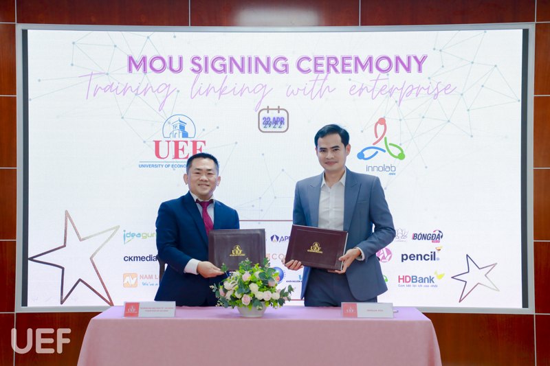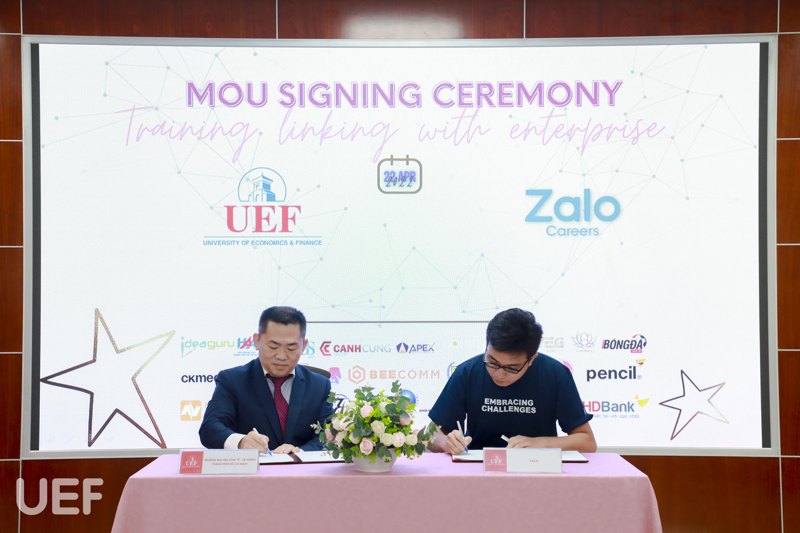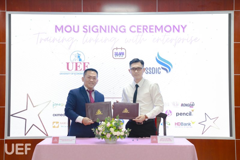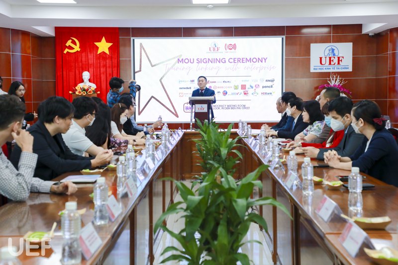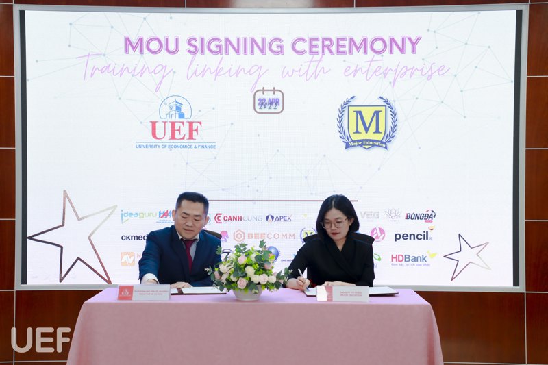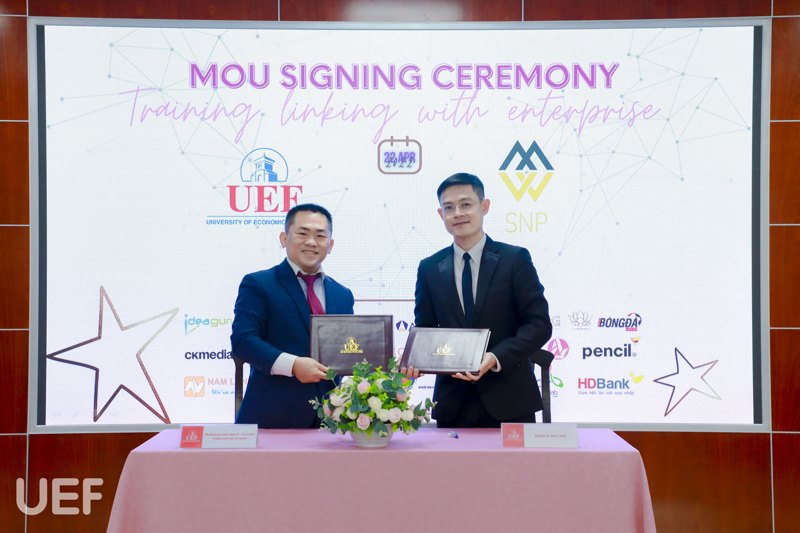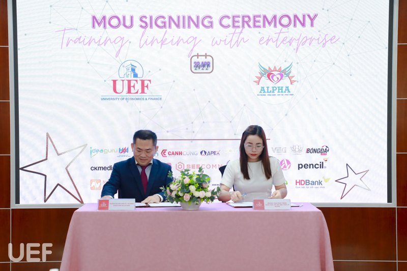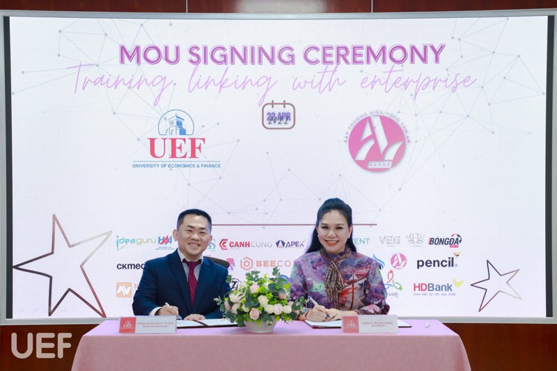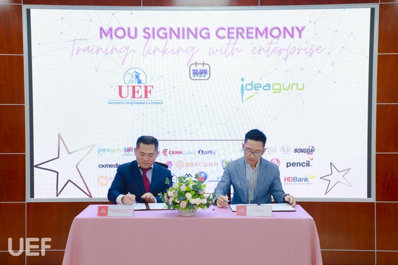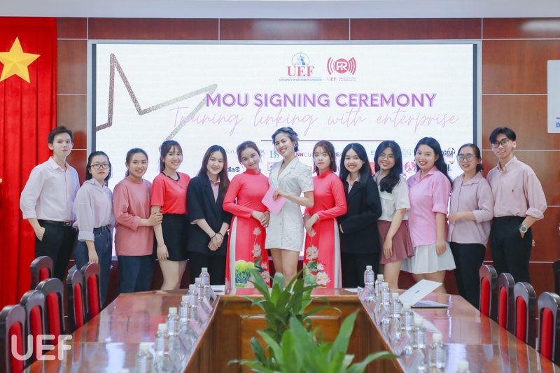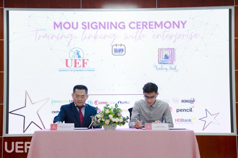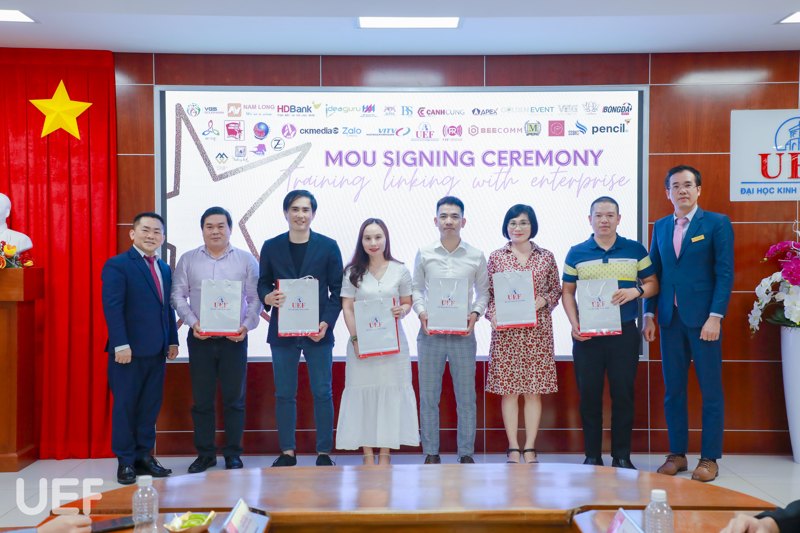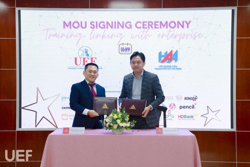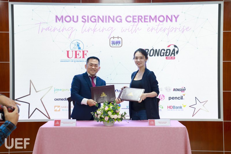 Để giúp sinh viên đang theo học nhóm ngành này có cơ hội tiếp cận và học hỏi nhiều hơn từ phía doanh nghiệp, đa dạng hóa kênh thực tập, việc làm, chiều ngày 22/4, UEF đã tổ chức lễ ký kết đào tạo gắn kết doanh nghiệp cùng 21 đối tác thuộc các ngành Quan hệ công chúng, Tổ chứ sự kiện, Quảng cáo, Tâm lý học và Truyền thông đa phương tiện.