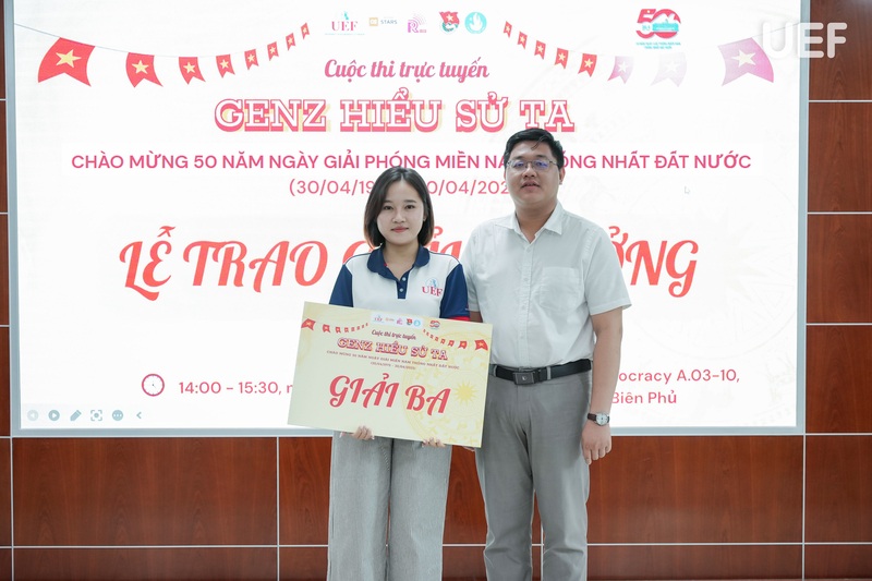 Cuộc thi “Gen Z hiểu sử ta” khép lại bằng những dấu ấn đẹp, tiếp thêm niềm tin rằng lịch sử không còn là những trang sách khô khan mà đã thực sự sống động trong trái tim thế hệ trẻ. Với tinh thần học hỏi, tìm tòi và lòng tự hào dân tộc, sinh viên UEF đã lan tỏa năng lượng tích cực, cùng nhau giữ gìn, kế thừa và phát huy những giá trị truyền thống quý báu của cha ông trong một hành trình mới - hành trình khẳng định bản sắc Việt giữa thời đại hội nhập.