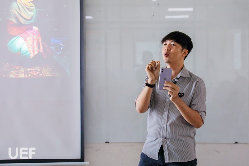 Tại buổi chia sẻ, diễn giả Hải An đã mang đến nhiều câu chuyện thú vị về những chuyến đi và cách sử dụng điện thoại để chụp ảnh đẹp. Cạnh đó, anh còn kể về những câu chuyện nghề, chuyện đời mà mình đã trải qua trong suốt hành trình “săn ảnh”. Mỗi câu chuyện đã cung cấp thêm cho sinh viên UEF nhiều bài học thực tế giá trị, giúp các bạn bổ sung thêm nhiều kỹ năng mềm cần thiết cho sinh viên ngành Quan hệ công chúng.