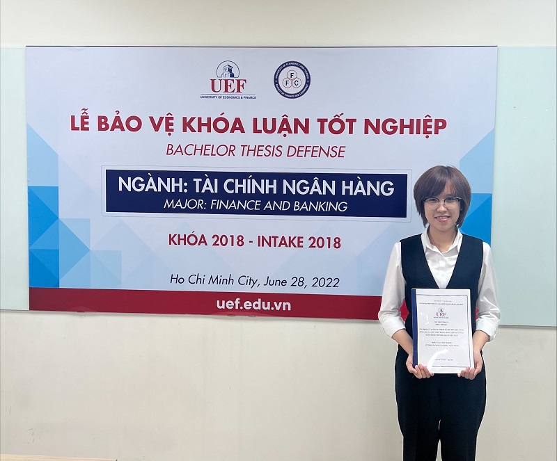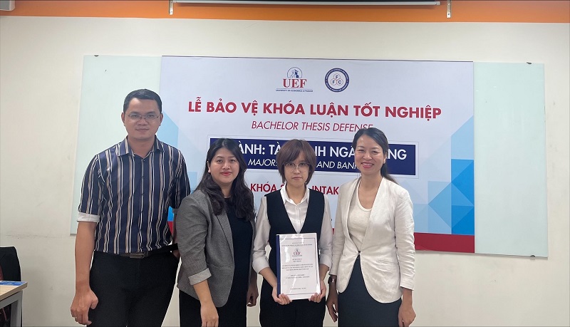 Theo đó, chiều ngày 28/6, sinh viên Chu Thị Tường Vi - Khoa Tài chính – Thương mại UEF đã bảo vệ thành công đề tài “Tác động của trách nhiệm xã hội đến khả năng sinh lợi của các ngân hàng thương mại ở Việt Nam”. Đề tài nhận được nhiều lời khen từ các thầy cô trong hội đồng và giảng viên hướng dẫn bởi tính mới và khả năng phát hiện vấn đề tốt.
