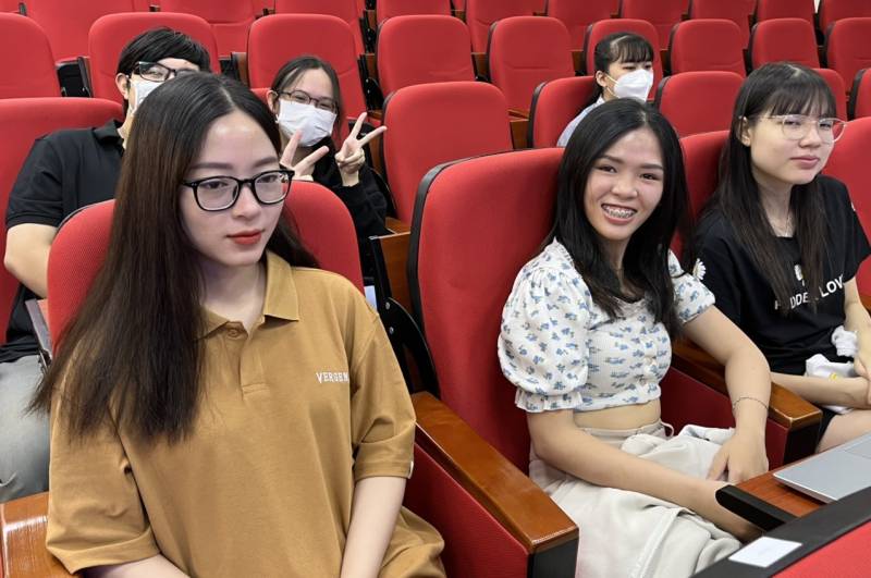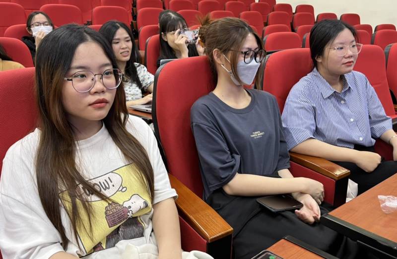 Sinh viên chăm chú lắng nghe chia sẻ của diễn giả Vương Huyền Cơ