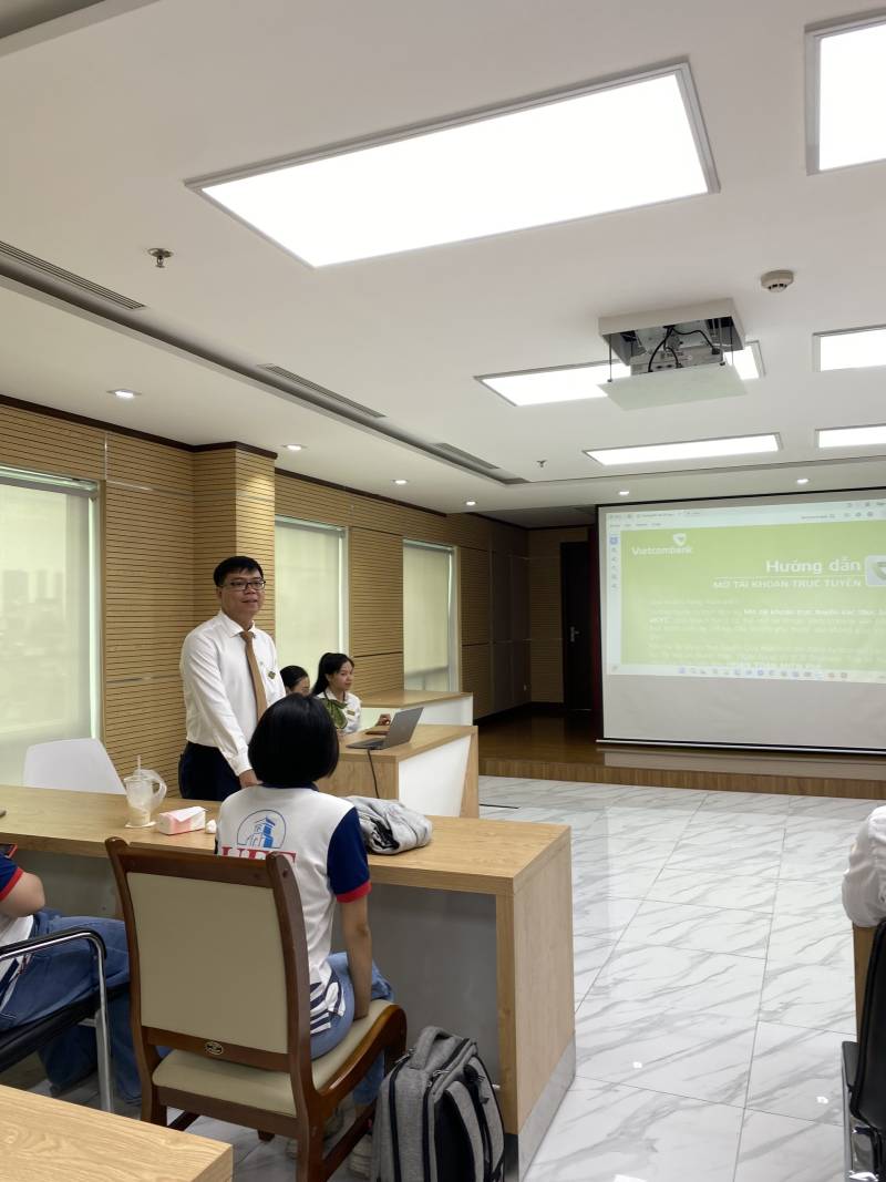 Bên cạnh đó, sinh viên có dịp quan sát trực tiếp các hoạt động diễn ra hằng ngày tại quầy giao dịch, bộ phận chăm sóc khách hàng và các phòng ban nghiệp vụ. Qua đó, các bạn có cơ hội tìm hiểu kỹ hơn về môi trường làm việc chuyên nghiệp, yêu cầu công việc và tiêu chí tuyển dụng của một tổ chức tài chính lớn như Vietcombank.