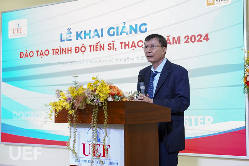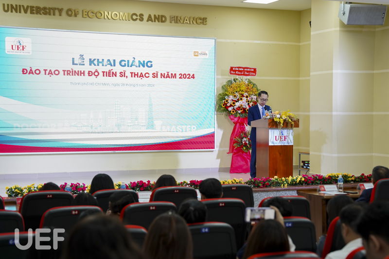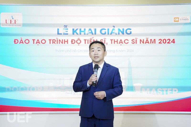 Phát biểu tại lễ khai giảng, PGS.TS. Ngô Cao Cường đã gửi lời cảm ơn đến các anh, chị học viên, nghiên cứu sinh đã tin tưởng và lựa chọn UEF là nơi để tiếp sức con đường chinh phục tri thức của mình. Thầy cũng gửi lời động viên đến tất cả anh, chị ra sức học tập, nghiên cứu để hoàn thành chương trình đúng thời hạn. UEF, Viện Đào tạo sau đại học và các thầy, cô sẽ luôn sát cánh, đồng hành và hỗ trợ anh, chị hết mình trong suốt hành trình này, thầy nhấn mạnh.