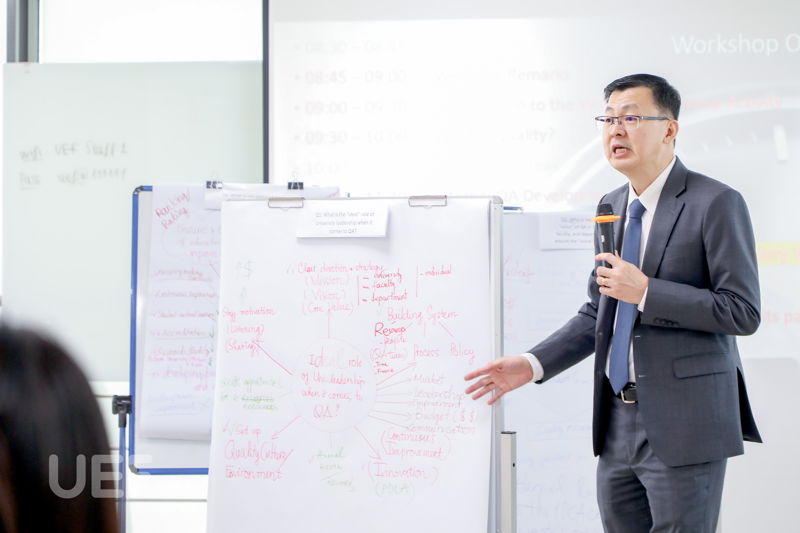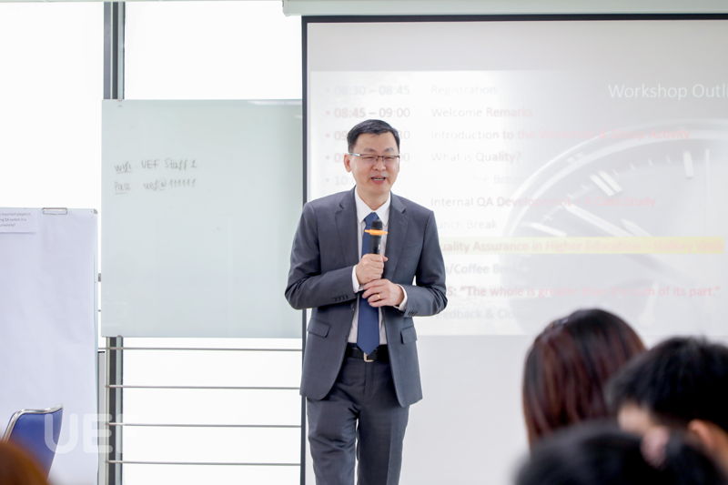 Sáng 9/9, Trung tâm Bảo đảm chất lượng và Dự án quốc tế UEF phối hợp với Văn phòng trường tổ chức chương trình bồi dưỡng với chủ đề “Quality - A driving force of university development”. Dẫn dắt và mang đến nhiều thông tin hữu ích cho chuyên đề lần này là GS.TS. Duu Sheng Ong.