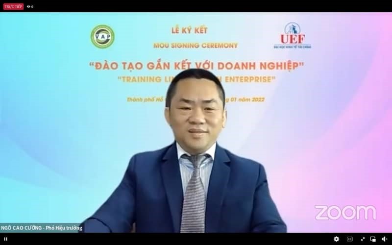Mở đầu chương trình, đại diện UEF, PGS.TS. Ngô Cao Cường phát biểu: “Hội Tâm lý học Việt Nam là đối tác quan trọng của UEF, mối quan hệ hợp tác hôm nay là bước tiến mới trong việc đào tạo ngành Tâm lý học của trường. Cảm ơn các nhà tâm lý học và bác sĩ tâm lý đã giúp cho cuộc sống tinh thần của con người thoải mái hơn. Đào tạo gắn kết doanh nghiệp là "kim chỉ nam" trong chương trình giáo dục của UEF. Tâm lý học là ngành học còn khá mới tại trường, việc kết nối với Hội Tâm lý học Việt Nam là vinh dự của khoa cũng như UEF. Đây là cơ sở giúp sinh viên lĩnh hội kiến thức mới mẻ và bổ ích trong ngành Tâm lý học và hơn thế nữa là tiếp cận thưc tiễn, trở thành nguồn nhân lực chất lượng cao. Mối quan hệ hợp tác này sẽ giúp các bạn sinh viên ngành Tâm lý học tiến nhanh, tiến xa và tiến bền vững”.