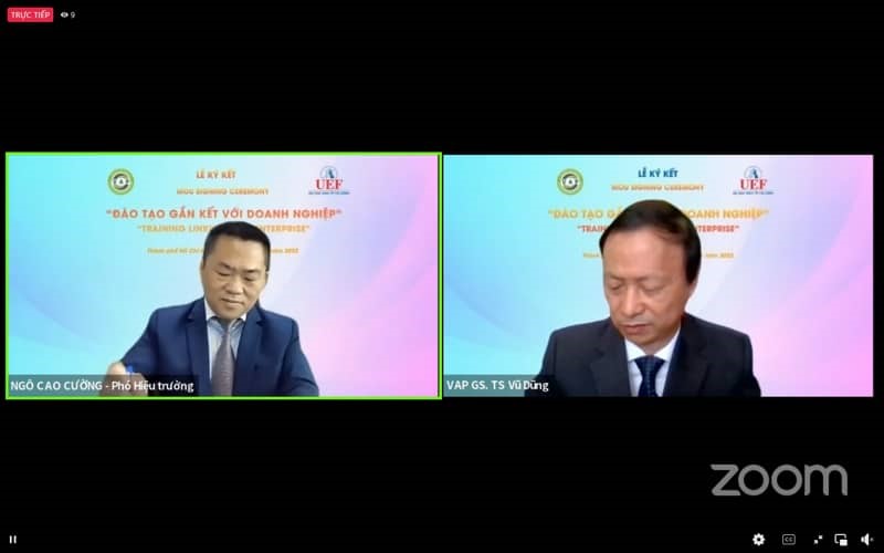 Đại diện UEF - PGS.TS. Ngô Cao Cường và đại diện Hội Tâm lý học Việt Nam - GS.TS. Vũ Dung đã đặt bút ký kết dưới sự chứng kiến của các khách mời tham dự. Theo biên bản ký kết, nội dung hợp tác giữa UEF và Hội Tâm lý học Việt Nam gồm: Xây dựng các hoạt động đào tạo, tập huấn, nâng cao nguồn nhân lực trong lĩnh vực tâm lý học; Sử dụng các nguồn lực về con người, kết nối mạng lưới chuyên gia của hai bên để triển khai các hoạt động trong các lĩnh vực tâm lý học phục vụ cộng đồng; Triển khai các hoạt động hợp tác nghiên cứu khoa học (đồng tổ chức, luân phiên tổ chức các hội nghị, hội thảo khoa học,...); Thúc đẩy các hoạt động hợp tác cùng có lợi khác.