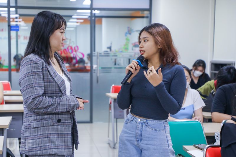 Nhân cơ hội được gặp vị diễn giả đặc biệt này, các bạn sinh viên đã mạnh dạn tương tác và đặt nhiều câu hỏi để được giải đáp. Với lối dẫn dắt, lý giải dí dỏm, nữ diễn giả đã mang đến một buổi workshop hết sức thú vị, tạo bầu không khí tươi vui và sinh động, góp nên sự thành công cho hoạt động này.