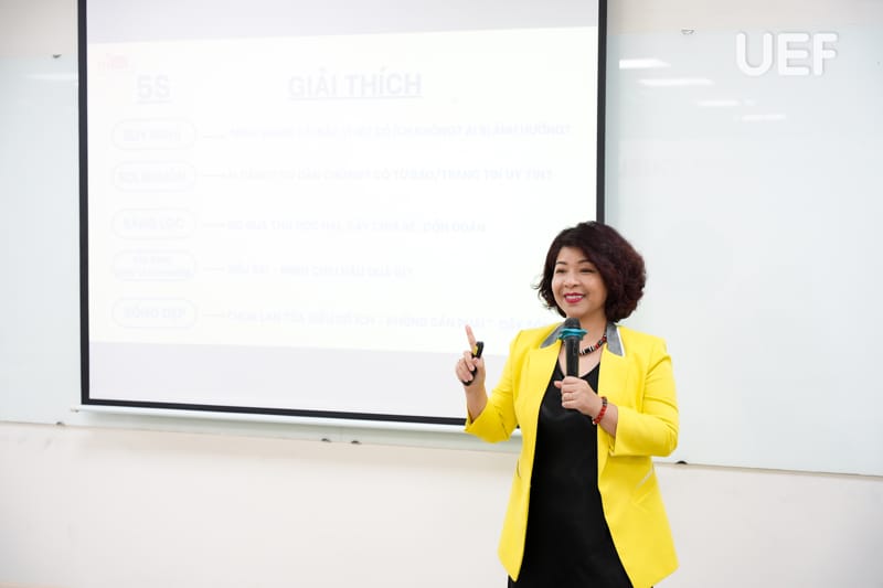 Diễn giả chia sẻ những quan điểm giúp sinh viên ý thức được trách nhiệm sử dụng mạng xã hội của người trẻ