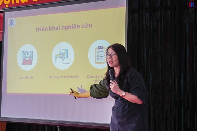 Tại buổi báo cáo, TS. Trần Thanh Huyền đã chia sẻ về kinh nghiệm trong lĩnh vực Nghiên cứu khoa học của mình. Ở đây, cô đã chia sẻ về khái niệm Nghiên cứu khoa học, các mục tiêu, cấu trúc cũng như các bước để thực hiện đề tài nghiên cứu.