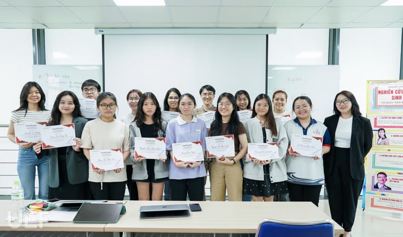 Sinh viên được trao giấy chứng nhận hoàn thành chuỗi Workshop Nghiên cứu khoa học