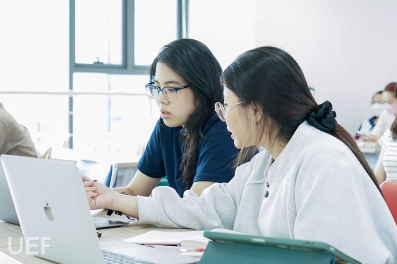 Sinh viên làm việc theo nhóm để hoàn thành bài tập thực hành của khách mời