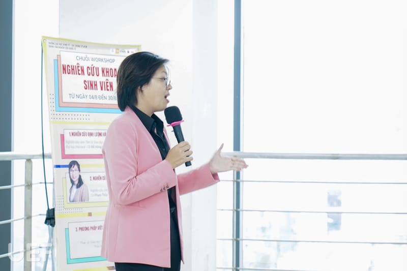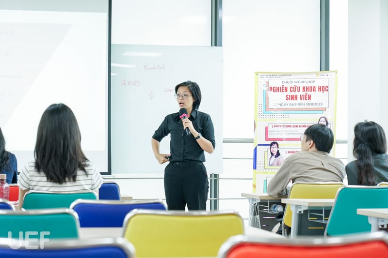 Trong buổi này, diễn giả tập trung cho sinh viên thực hành việc phân tích đề tài. Các bạn cùng thảo luận về lộ trình làm nghiên cứu thông qua đề tài chung của diễn giả đưa ra. Theo cô Thảo Nguyên, việc ứng dụng nghiên cứu khoa học sẽ theo các bạn trong bất kể công việc gì. Khi các bạn tập trung làm việc mà có sự nghiên cứu sẽ tạo nên tính khác biệt.