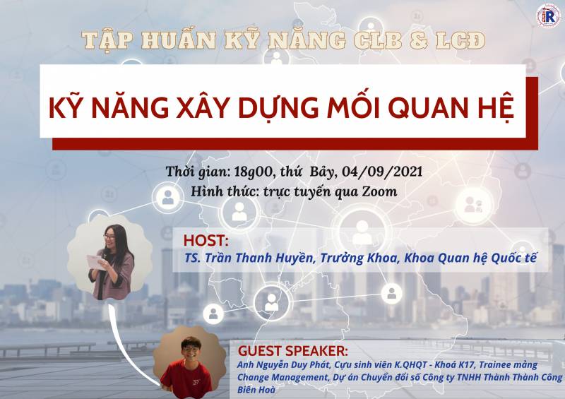 Nhằm mục đích nâng cao năng lực quản lý của Ban chủ nhiệm (BCN) các Câu lạc bộ (CLB) trực thuộc Khoa và Ban chấp hành Liên chi đoàn (BCH-LCĐ) Khoa; giúp các bạn sinh viên có nguyện vọng tham gia vào BCN-CLB và BCH-LCĐ Khoa có cơ hội được rèn luyện kỹ năng chuyên môn, trao đổi và giải đáp thắc mắc trong quá trình tổ chức, quản lý hoạt động của CLB và LCĐ, Khoa Quan hệ Quốc tế tổ chức khóa tập huấn thành viên BCN-CLB và BCH-LCĐ, với chủ đề Buổi 1: Kỹ năng xây dựng mối quan hệ.