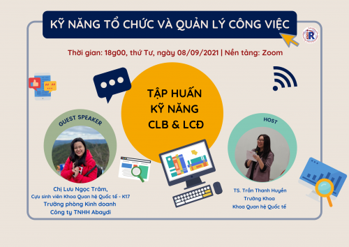 Tiếp sau hai buổi tập huấn về kỹ năng xây dựng mối quan hệ và kỹ năng tổ chức-quản lý công việc, Khoa Quan hệ Quốc tế tiếp tục tổ chức khóa tập huấn thành viên BCN-CLB...