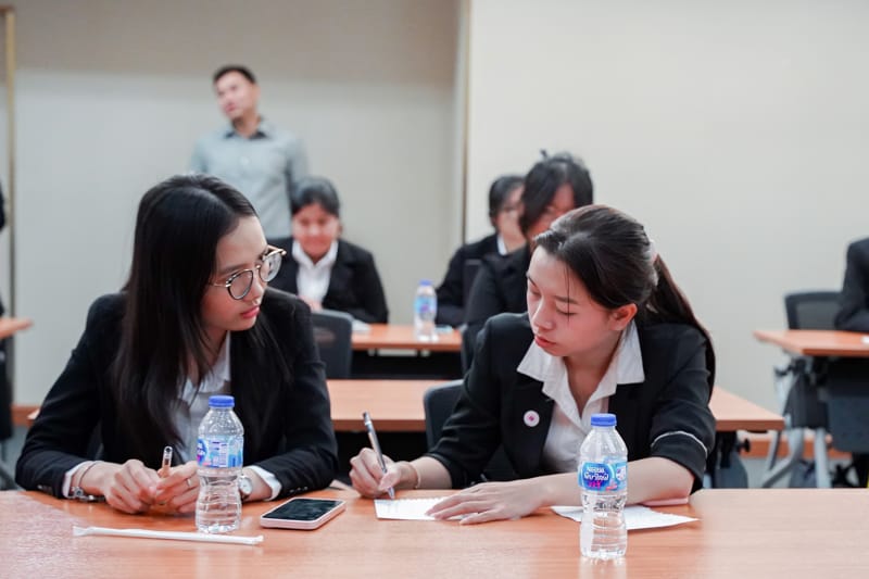 Trong đó, giao lưu với giảng viên và sinh viên quốc tế đang theo học tại Đại học Rangsit là một trải nghiệm đáng nhớ của các bạn vì được rèn luyện kỹ năng ghi chép tin trong quan hệ quốc tế, giao tiếp tiếng Anh, đặc biệt là tiếng Anh chuyên ngành.