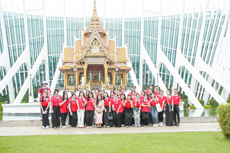 Bên cạnh đó, sinh viên còn tham gia hoạt động tham quan, khám phá văn hóa tại các địa danh nổi tiếng như Hoàng cung Thái Lan, Chùa Bình Minh (Wat Arun), chợ đêm Jodd Fair. Những trải nghiệm này giúp các bạn hiểu thêm về sự giao thoa giữa truyền thống và hiện đại của đất nước này.